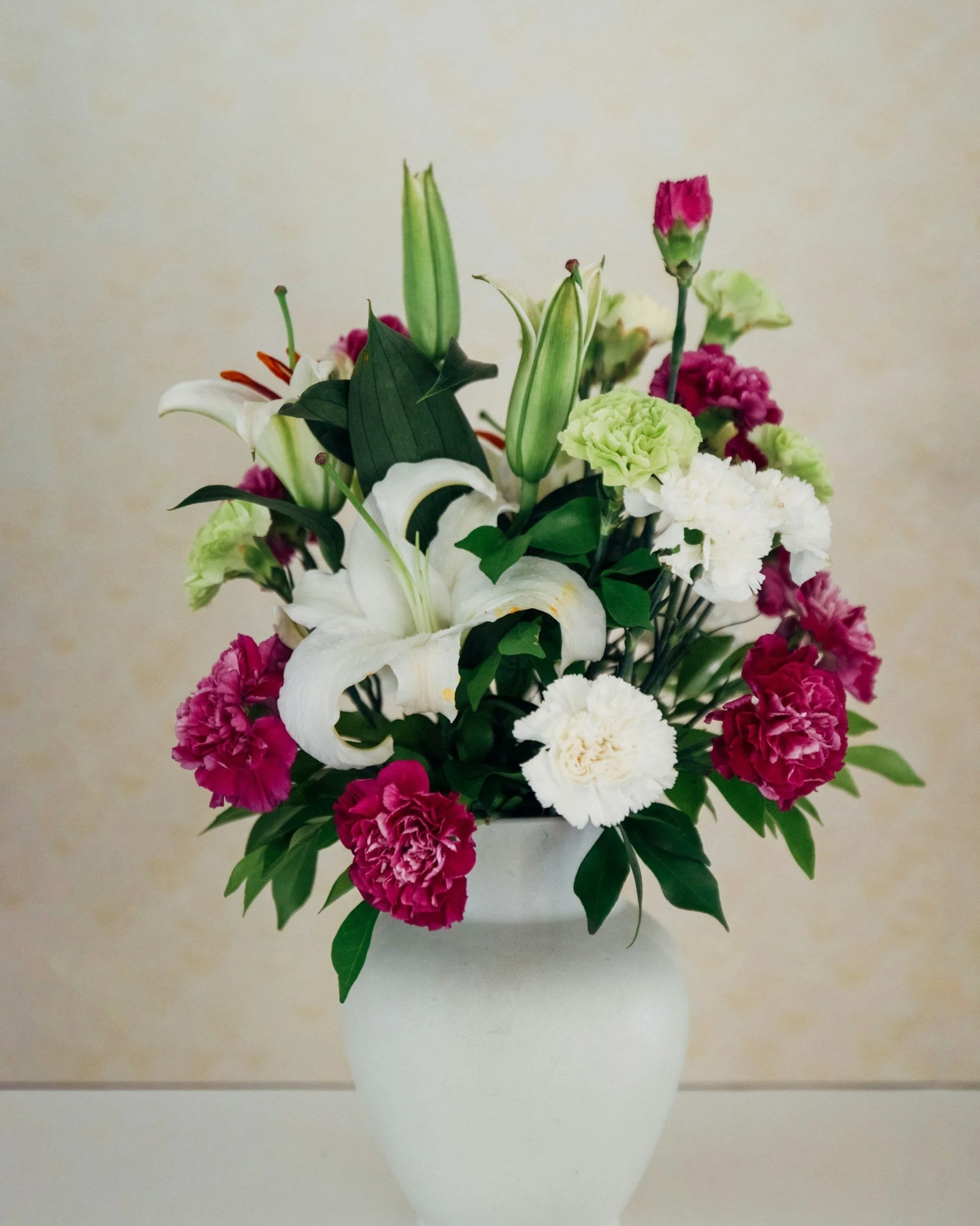 · For one-of-a-kind flower arrangements, such as all roses or lilies, we will make every attempt to match the flower type but may substitute with another color.
